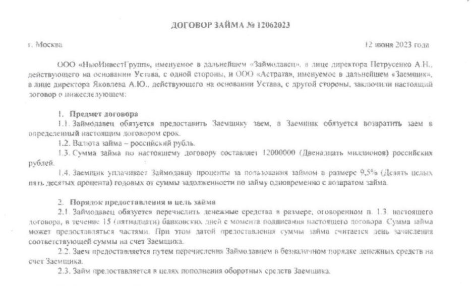 Удзел пералічаных вышэй кампаніяў у схеме абыходу санкцыяў невыпадковы. Іх сувязь пацвярджаюць фінансавыя дакументы за 2023 год, якія мы атрымалі дзякуючы «Рабочаму Руху». У чэрвені кіпрская Dimicandum заключыла з «НьюІнвестГрупп» дзве дамовы пазыкі. [*] [*] У тым жа месяцы тая аформіла пазыку кампаніі «Астрата». [*] Апроч таго, назва расейскай кампаніі, якая часткова належыць Свірыдаву, супадае з назвай украінскага ТАА «Астрата», замешанага ў справе аб незаконным рээкспарце аўтамабіляў, у якой фігуруе кампанія Rostumel. [*] [*]