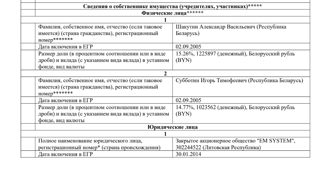 Абвяржэнне: Гэта няпраўда, Аляксандр Шакуцін з’яўляецца мажарытарным уладальнікам ТАА «Наванэп», яму належыць кантрольная доля ў 50,2%. [*] [*]