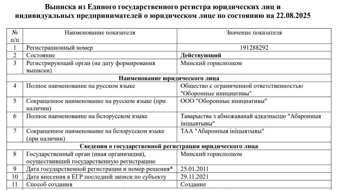 The second founder’s bio contains details that don’t fit together well. On the one hand, the press service of the State Authority for Military Industry of the Republic of Belarus quoted Melikayeu as a representative of Oboronnye Initsiativy and called the company a flagship of the national defense industry. Before establishing this company, he worked for UP Tetraedr from 2003 until at least 2021. Tetraedr produces military radio-electronic systems and is associated with the military-industrial complex. On the other hand, Melikayeu was recognized as a political prisoner by the Viasna human rights organization. In 2025, he was sentenced to a term of imprisonment by the Minsk City Court on charges of inciting hatred or discord (article 130 of the Belarusian Criminal Code). Following a visit to Minsk by John Coale, the US President’s special envoy, Melikayeu was pardoned in March 2026.