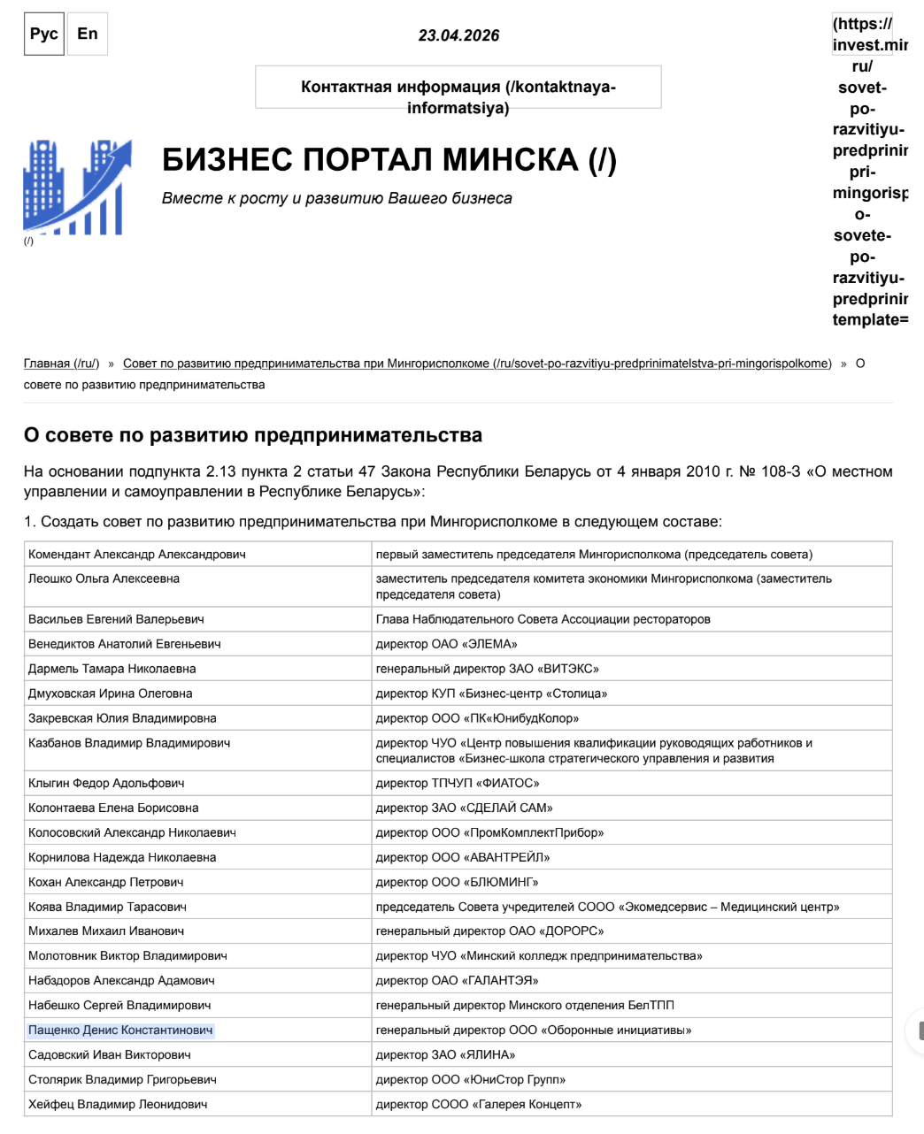 Belarusians Dzianis Pashchanka and Uladzimir Melikayeu are the co-founders of Abaronnyja Inicyjatyvy. [*] [*] Pashchanka was a member of the Council for Entrepreneurship Development under the Minsk City Executive Committee in 2010 and of the Public Advisory Council for Entrepreneurship Development under the State Authority for Military Industry from 2012 to 2017. [*]