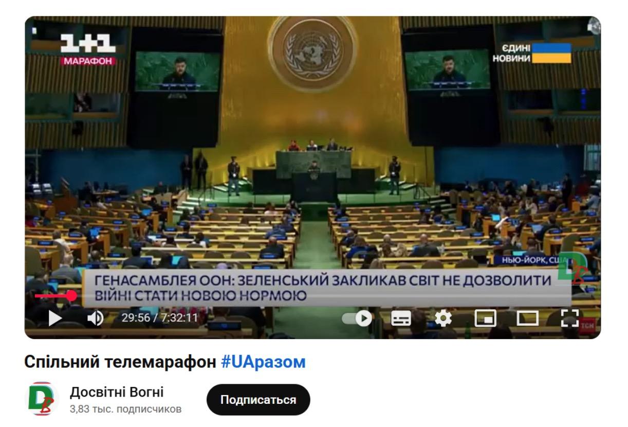 Еще один фейк про Владимира Зеленского 25 сентября озвучил Григорий Азаренок в стриме «Азаренок. Напрямую». Он назвал украинские СМИ «жалкими, тупыми позорниками» и обвинил их в подделке видео с выступления президента на Генасамблее ООН: