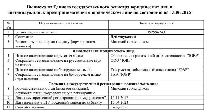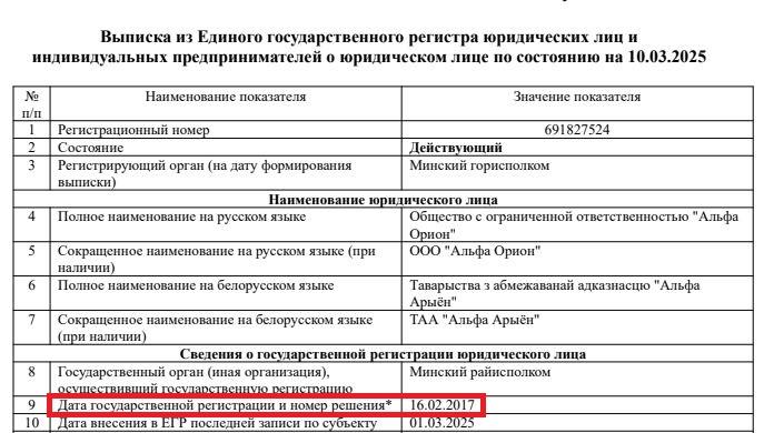 Мы подтверждаем, что ООО “Альфа Орион” ведет свою деятельность в полном соответствии с законодательством Республики Беларусь и международными обязательствами.