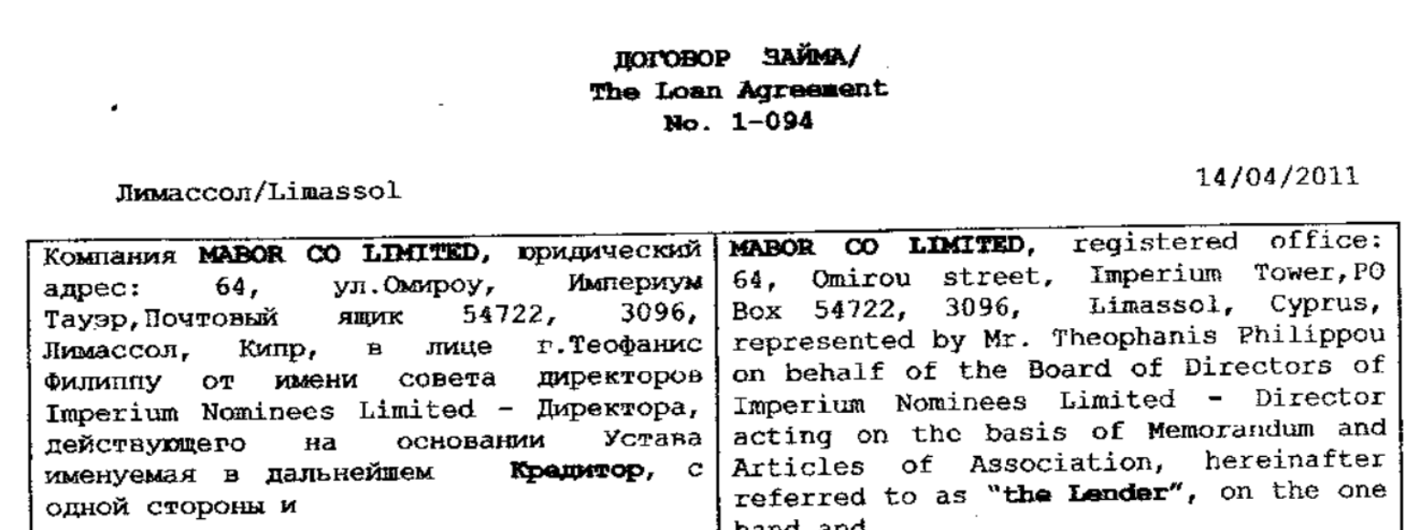 Цэнтральным суб’ектам у гэтай схеме была фірма Mabor Co Ltd (далей — Mabor). Праз яе праходзілі асноўныя кантрабандныя плыні. Валодала кампаніяй і была дырэктарам у ёй Imperium Nominees, што належала дачцэ і бізнес-партнёрам Нікаса Анастасіядыса. Сакратаром і юрыдычным кансультантам былі кампаніі, якімі сувалодаў сам Анастасіядыс, — Imperium Services і Nicos Chr Anastasiades & Partners. [*] [*] [*]
