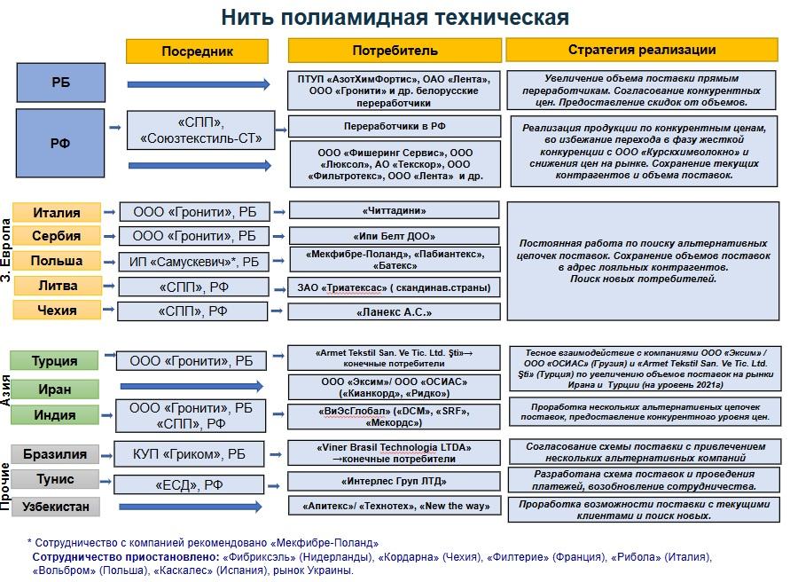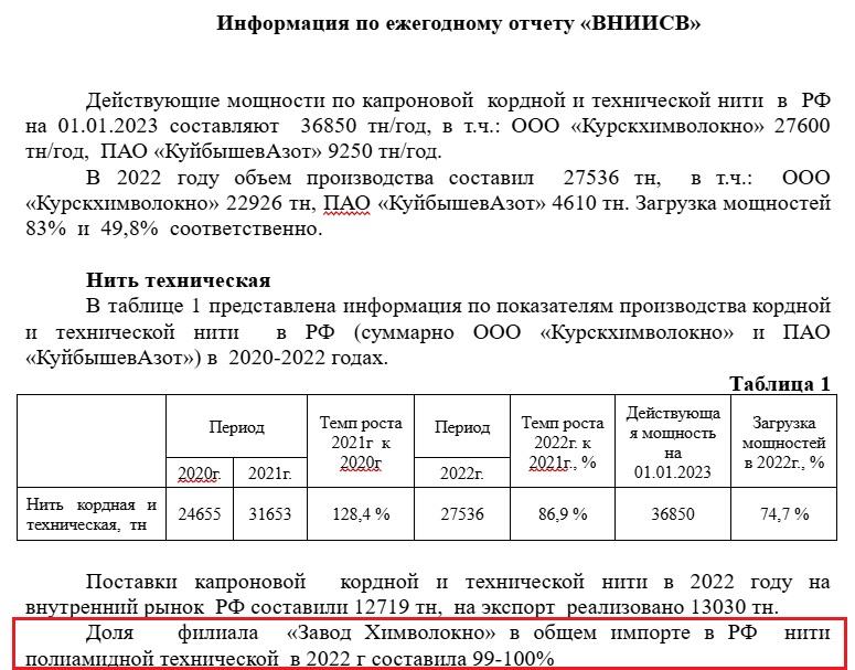 Прадпрыемства амаль манапольна забяспечвала Расею поліаміднай тэхнічнай ніткай у 2022 годзе, на яго долю прыпадала 99-100% імпарту з ЕАЭС.