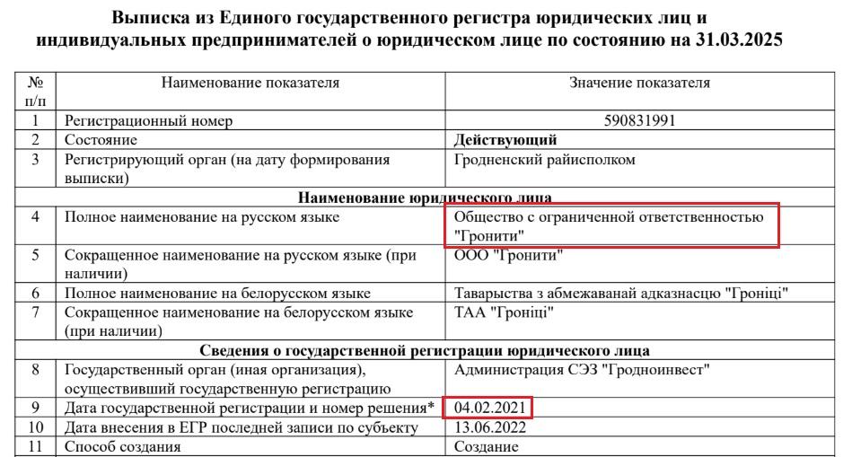Праз «Гроніці» ў 2022-2023 гадах у Італію, Латвію, Польшчу і іншыя краіны ЕЗ сышлі сотні партый санкцыйнай прадукцыі, схема працягвае дзейнічаць і ў 2025 годзе.