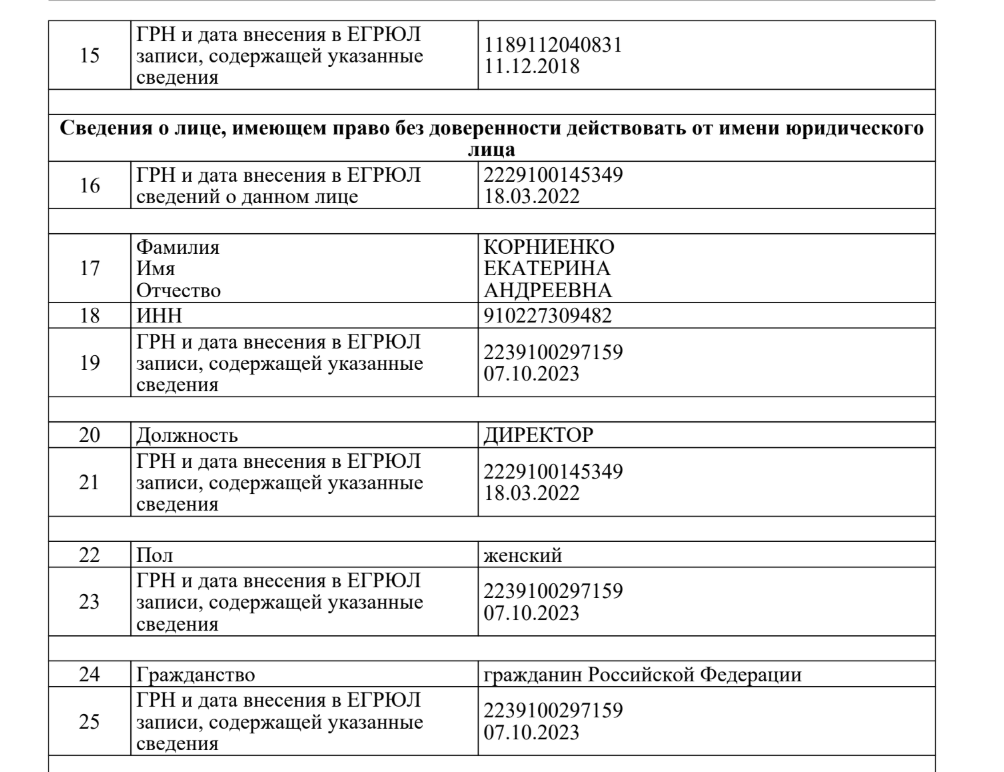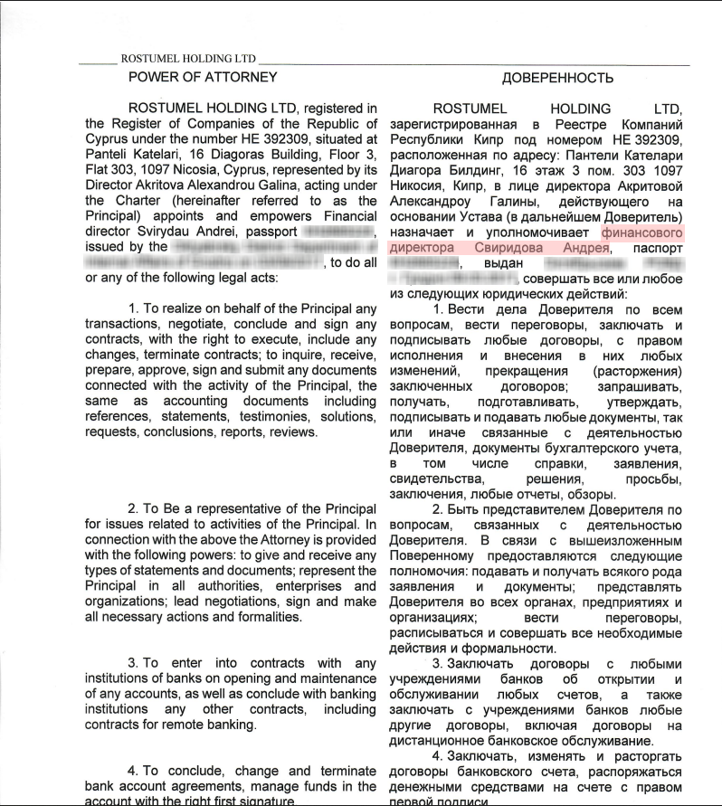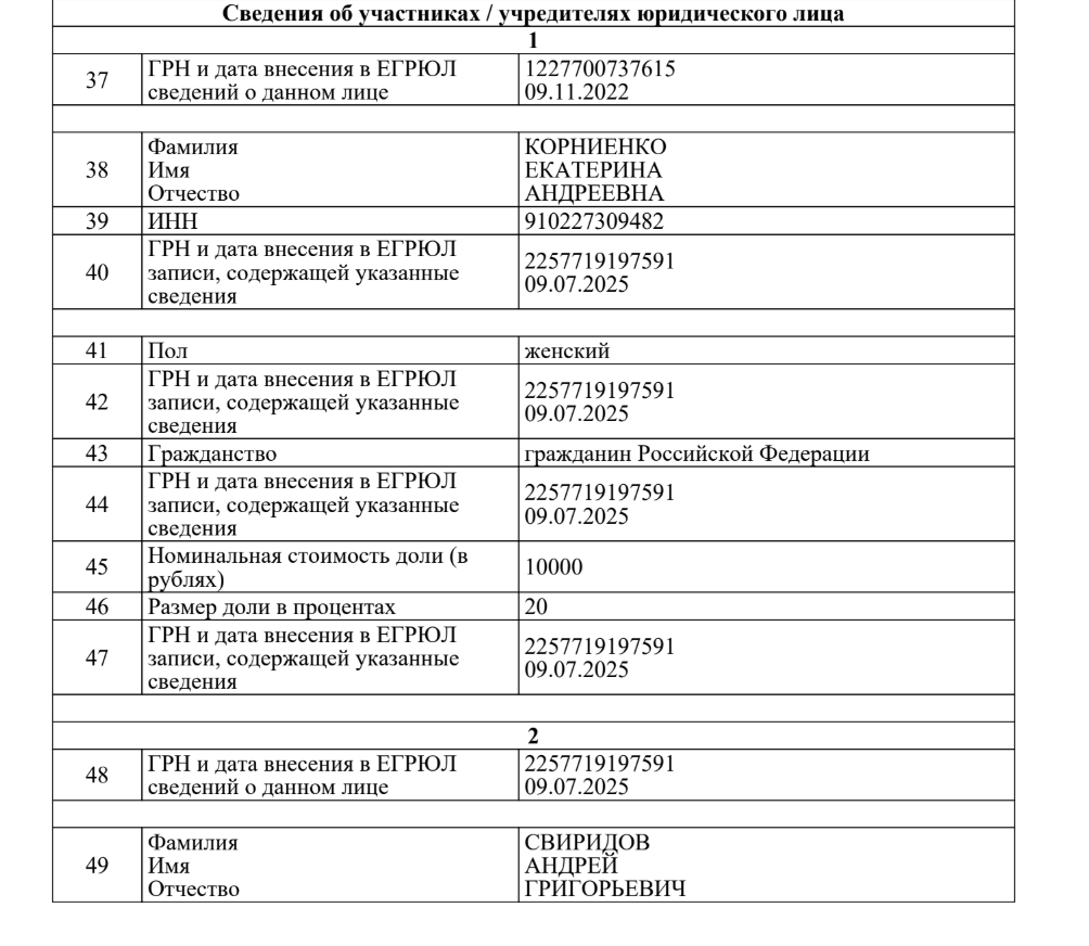 Кампанія «Астрата» з 9 ліпеня 2025 года на 80% належыць фігуранту некалькіх нашых расследаванняў Андрэю Свірыдаву. [*] [*] [*] Гэты грамадзянін Беларусі з 2019 па 2021 гады быў намеснікам тагачаснага кіраўніка справамі Аляксандра Лукашэнкі — Віктара Шэймана. Рэштай «Астраты» на момант выхаду матэрыялу валодала крымчанка з расейскім пашпартам Кацярына Карніенка. Да сярэдзіны 2025-га фірма ёй належала цалкам. Сувязь Карніенка і Свірыдава прасочваецца і праз іншую кампанію. З сакавіка 2022 года Карніенка займала пасаду дырэктара ТАА «ПИК», якім з красавіка 2019-га па кастрычнік 2022-га валодала кіпрская кампанія Rostumel Holding Limited (далей — Rostumel). [*] [*] [*] У апошняй, як пазначана ў даверанасці, станам на чэрвень 2024-га фінансавым дырэктарам значыўся Свірыдаў. [*]