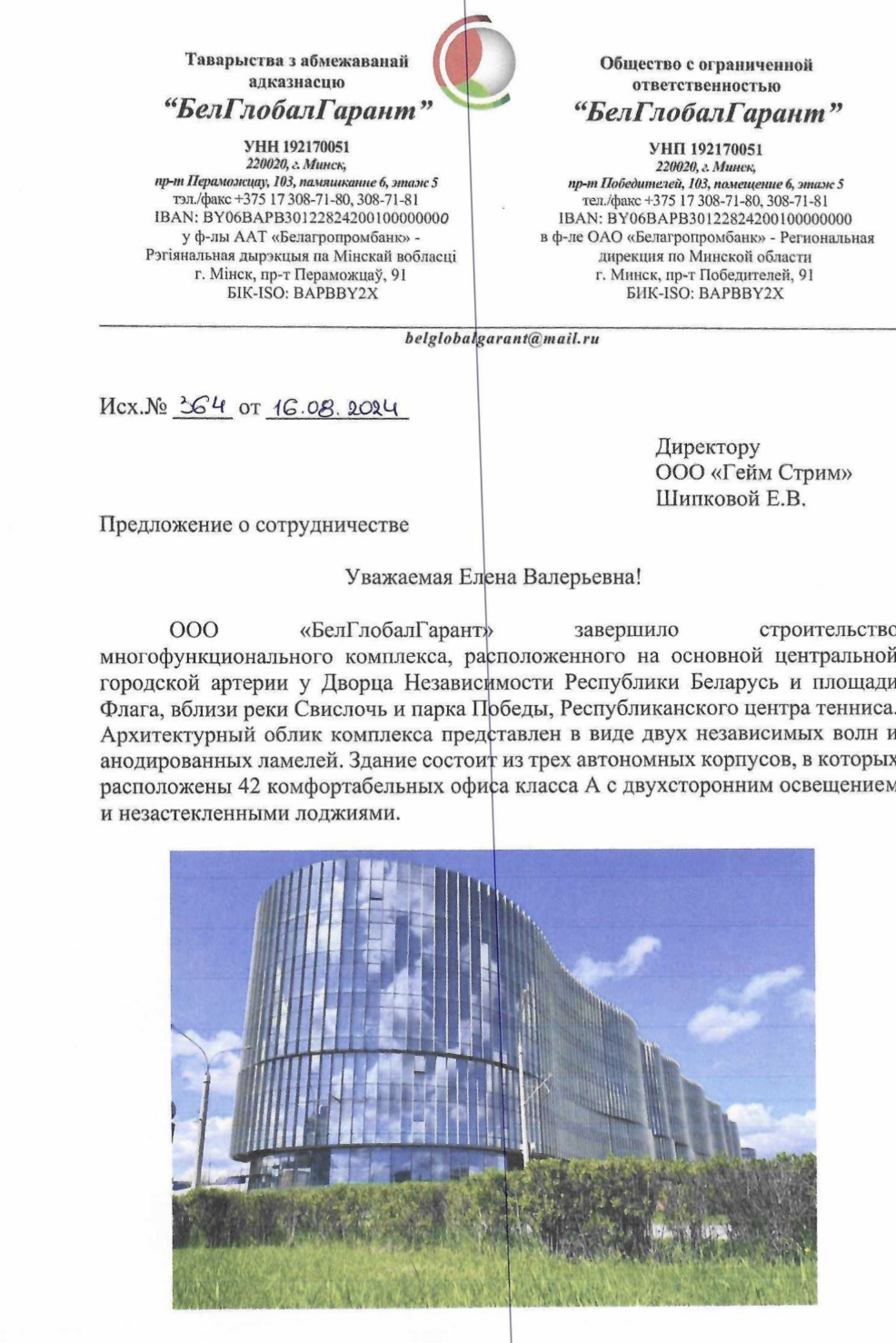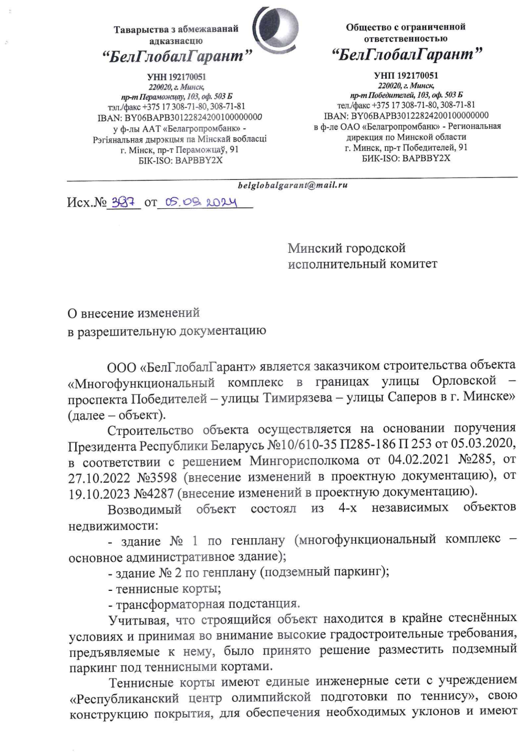 Інвестар, які атрымаў зямлю пад будаўніцтва ў цэнтры Менску, — ТАА «БелГлобалГарант». Гэта стала магчымым дзякуючы асабістаму даручэнню Аляксандра Лукашэнкі, якое той падпісаў 5 сакавіка 2020 года. Штопраўда, кампанія атрымала зямлю не ў прыватную ўласнасць, а ў арэнду. [*] [*] [*]