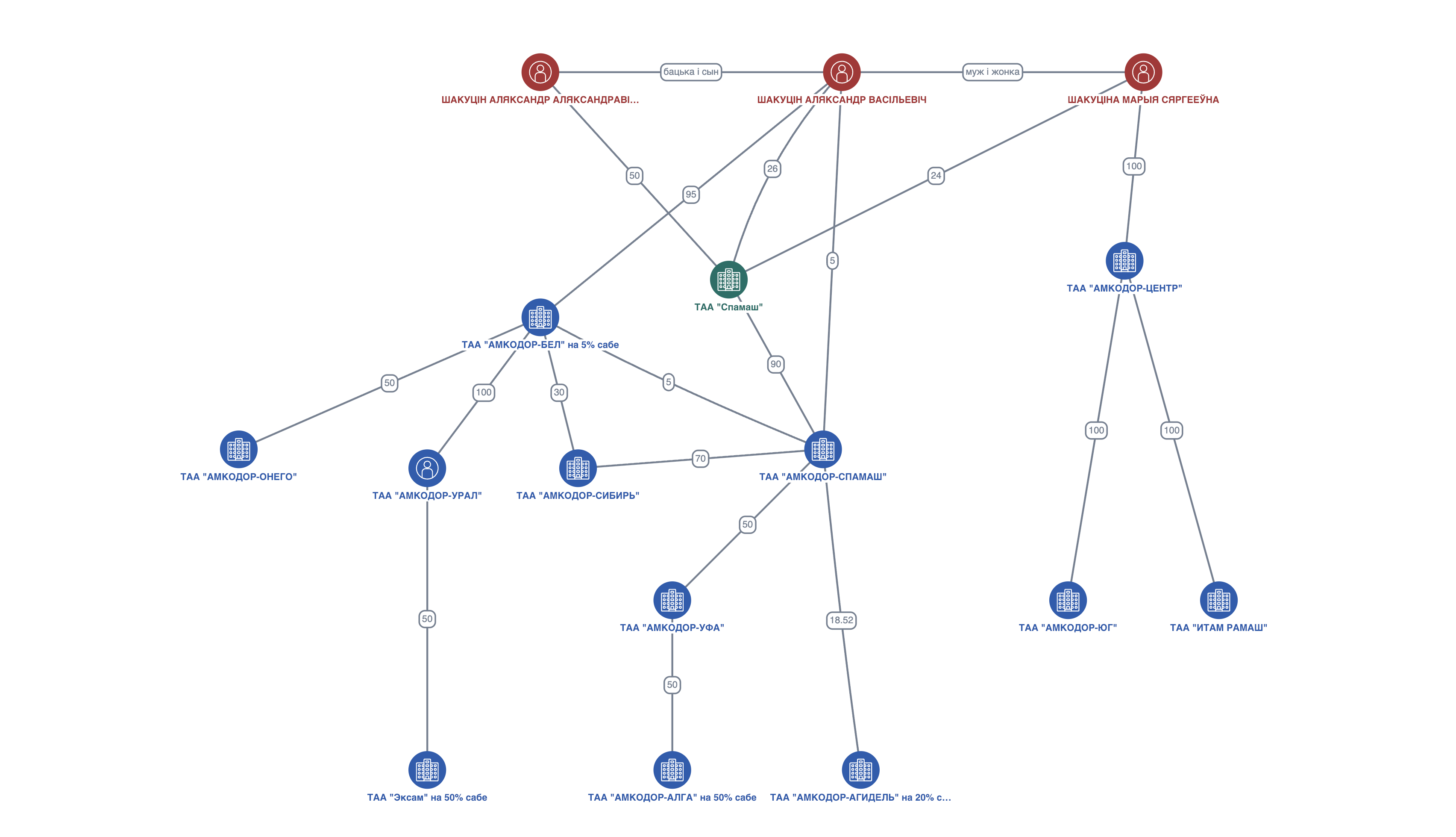 Абвяржэнне: Гэта часткова праўда, Аляксандр Шакуцін і яго жонка валодаюць долямі як мінімум у дзевяці расейскіх кампаніях, якія займаюцца выпускам, продажам і тэхнічным абслугоўваннем тэхнікі «Амкадор», але часткай фірмаў яны валодаюць на 100%.