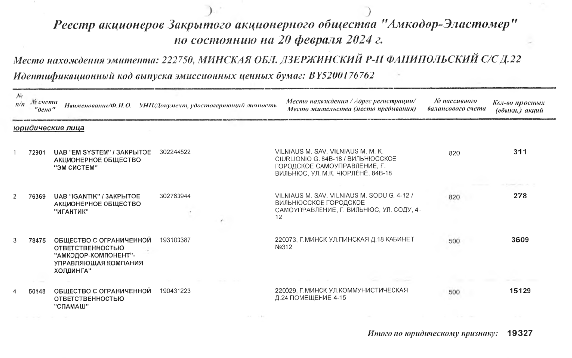 Абвяржэнне: Гэта няпраўда, ва ўсіх трох фірмах кантрольныя долі знаходзяцца ў руках Аляксандра Шакуціна і яго сям’і: «Амкадор-Эластамер» — праз кампанію «Спамаш», [*] СТАА «Проді» — праз «Амкадор-Эластамер» і «Амкадор-Спамаш», [*] [*] «Салео» — кіруючая кампанія холдынгу праз ТАА «Наванэп». [*] [*] [*]