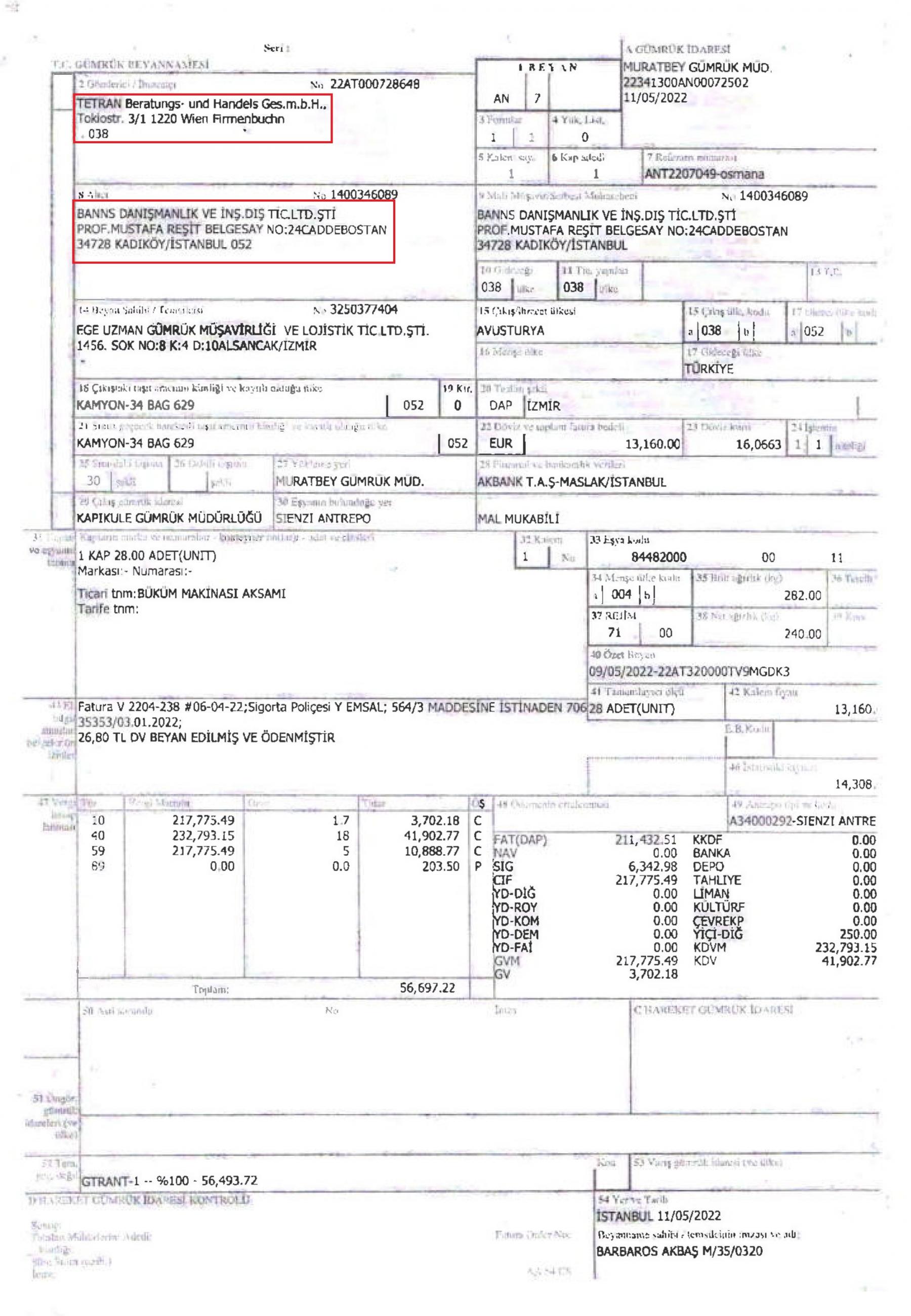 - Austrian company Tetran sold the parts to a Turkish intermediary (Banss danişmanlik ve i̇nşaat diş ti̇caret li̇mi̇ted şi̇rketi̇)