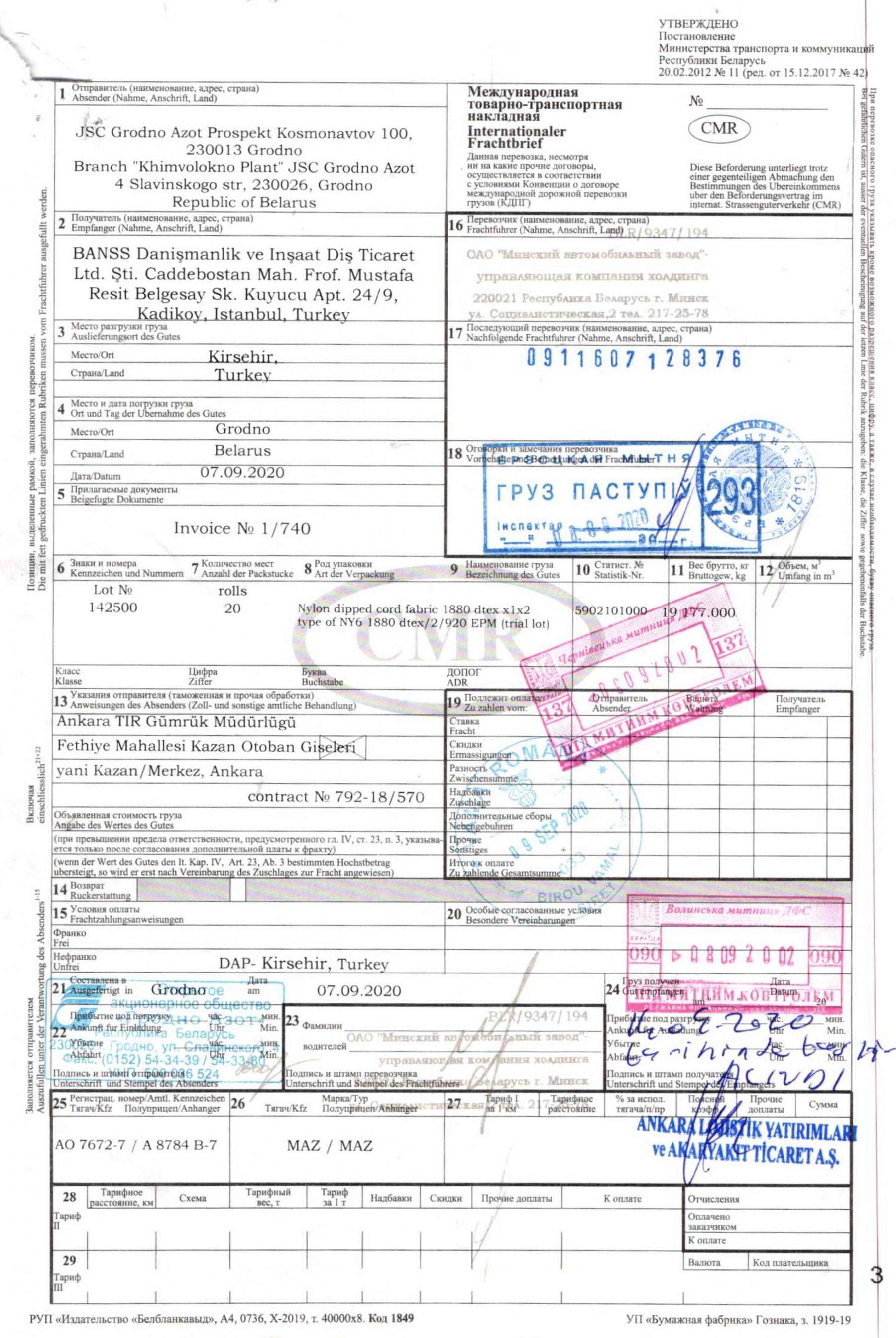 - TAA Groniti finally delivered the goods to Grodno Azot