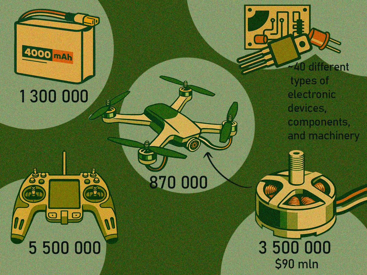 The Wall Street Journal wrote on October 29, 2025, quoting confidential reports, that Rustakt bought 3.3 million engines from China for the total sum of $83 million in the years 2023-25. A source in the logistics sector has provided the BIC with documents that give us some additional figures and show the scale of the Rustakt drone business.