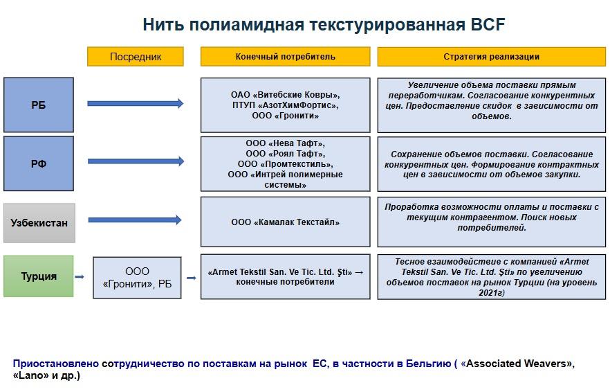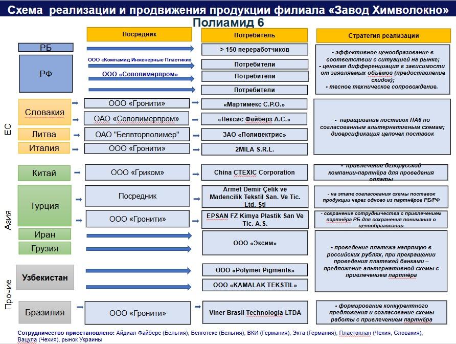 В Беларуси полиамид и волокна из него выпускает ОАО «Гродно Азот», к которому относится и филиал «Завод Химволокно». В апреле 2021 года США возобновили санкции против предприятия. К концу года к ним присоединился и Европейский союз. Однако, похоже, завод нашел решение этой проблемы.