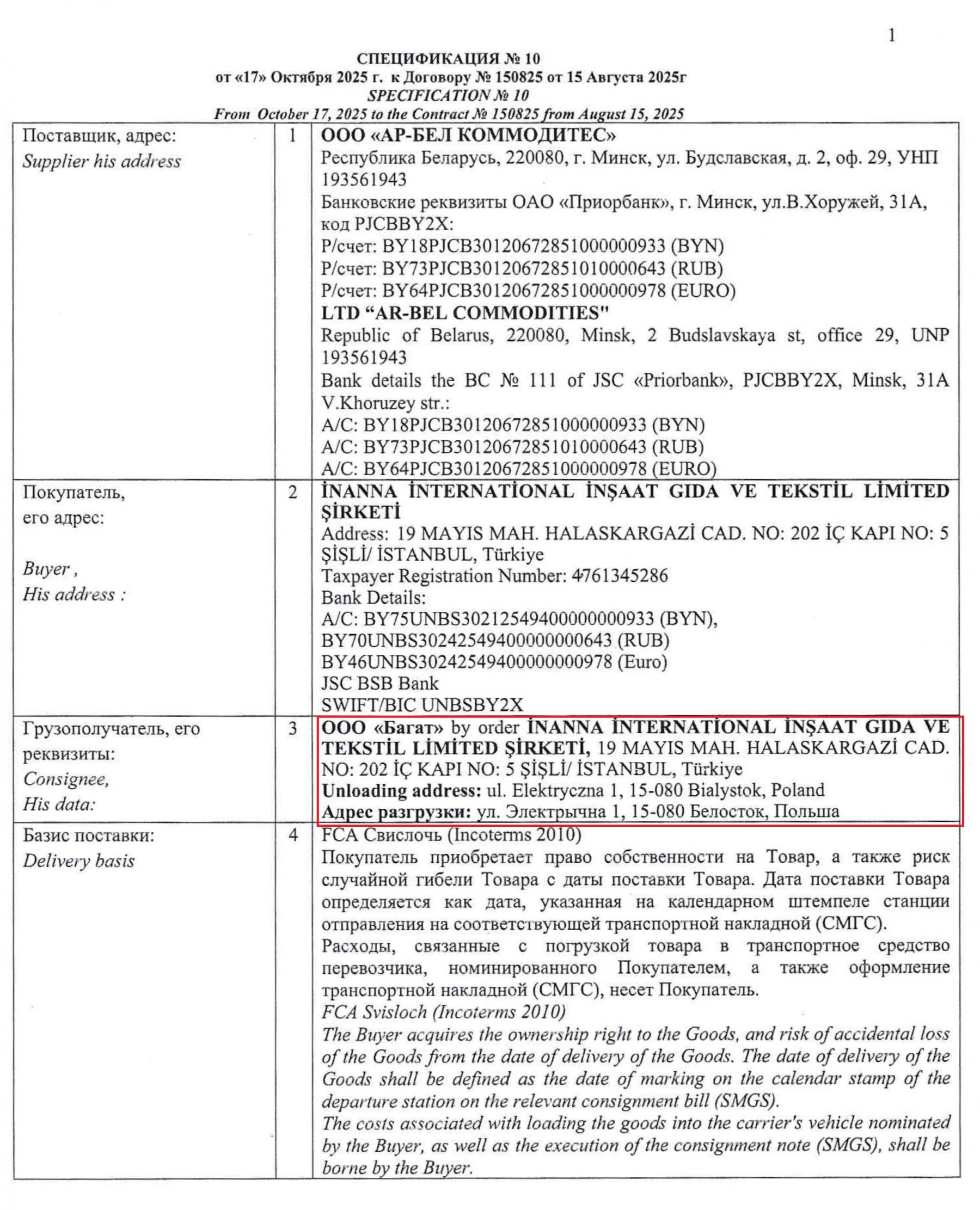 В официальных документах «Гронити» помимо директорки Анны Лобачевой фигурирует заместитель директора по коммерческим вопросам Алексей Коростелев. [*] Он владеет компанией, которая также помогает «Гродно Азоту» обходить санкции, — ООО «Ар-бел коммодитес». [*] [*] В августе 2025 года «Ар-бел коммодитес» заключила договор на €2 млн с турецкой компанией на поставку полиамидной продукции, которую, как мы выяснили, на самом деле производит беларусское подсанкционное предприятие. [*] Получателями груза по просьбе покупателя могут указываться фирмы в других странах. Например, партию нейлоновых нитей получила польская компания с адресом разгрузки в Белостоке — то есть купила товар фирма в стране, которая не вводила санкции, но поехал товар в Евросоюз. [*] [*] [*]