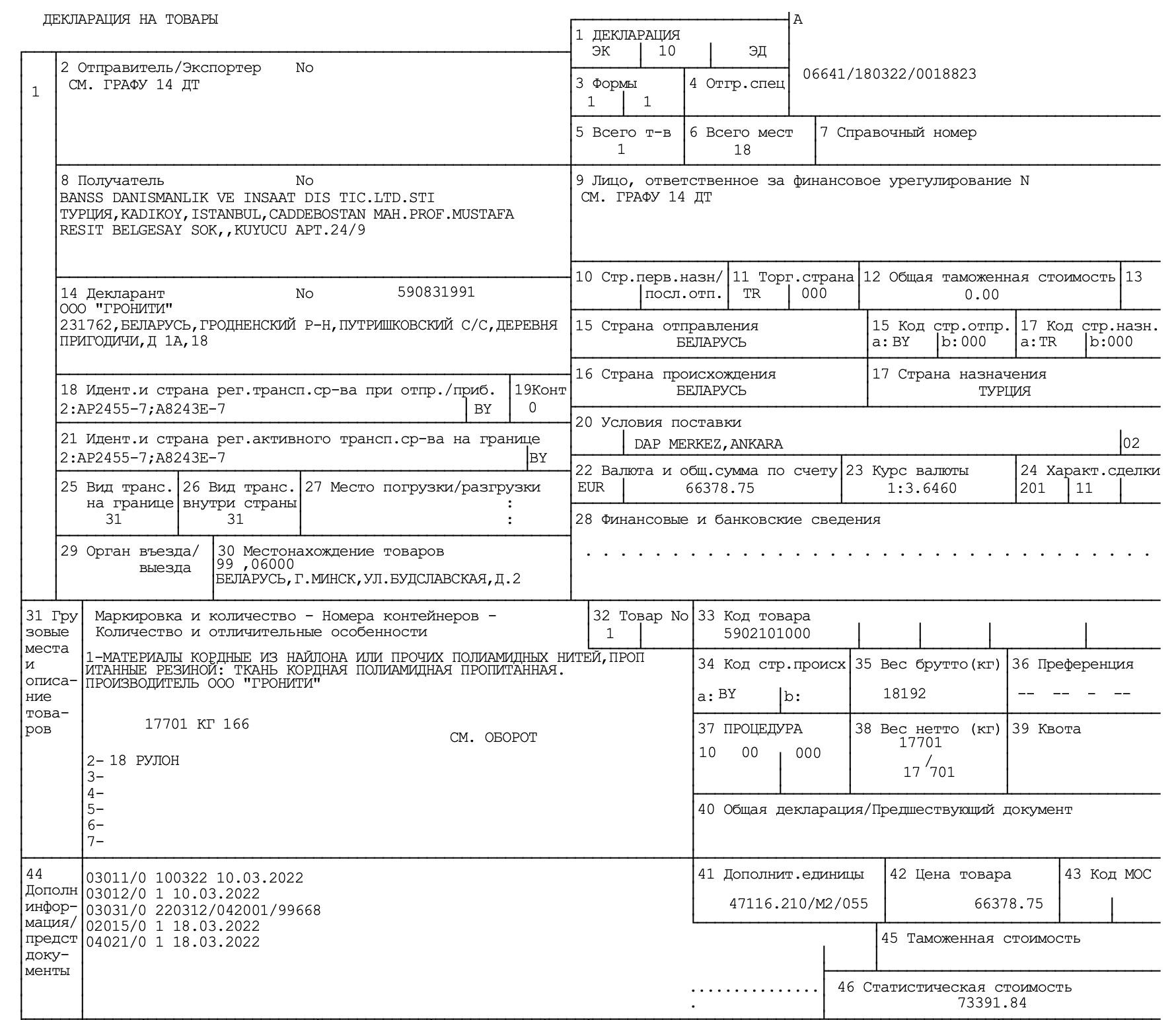 И другой способ нашелся. Из товарной накладной за май 2022 года, которую БРЦ получил от «Рабочего Руха», следует, что «Гродно Азот» все же приобрел фильеры, но через посредников. Первым была турецкая фирма Banss danişmanlik ve i̇nşaat diş ti̇caret li̇mi̇ted şi̇rketi̇. Она приобрела детали у Tetran и перепродала их ООО «Гронити» — знакомому нашим читателям по первой части этого расследования (компания поставляет в ЕС полиамид «Заводу Химволокно», филиалу «Гродно Азота», под видом своей продукции, помогая таким образом обойти санкции). [*] [*] [*] Наконец «Гронити» продала фильеру настоящему покупателю — «Гродно Азоту». [*]